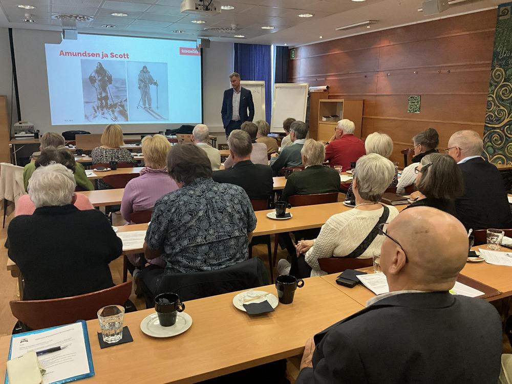 Piirin kehittämis- ja strategiapäivä pidettiin Riihimäen Teatterihotellissa 27 osallistujan voimin. Päivän avasi piirin puheenjohtaja Pekka Raitala ja Riihimäen kansallisten senioreiden puheenjohtaja Aino Närkki toivotti osallistujat tervetulleeksi Riihimäelle.