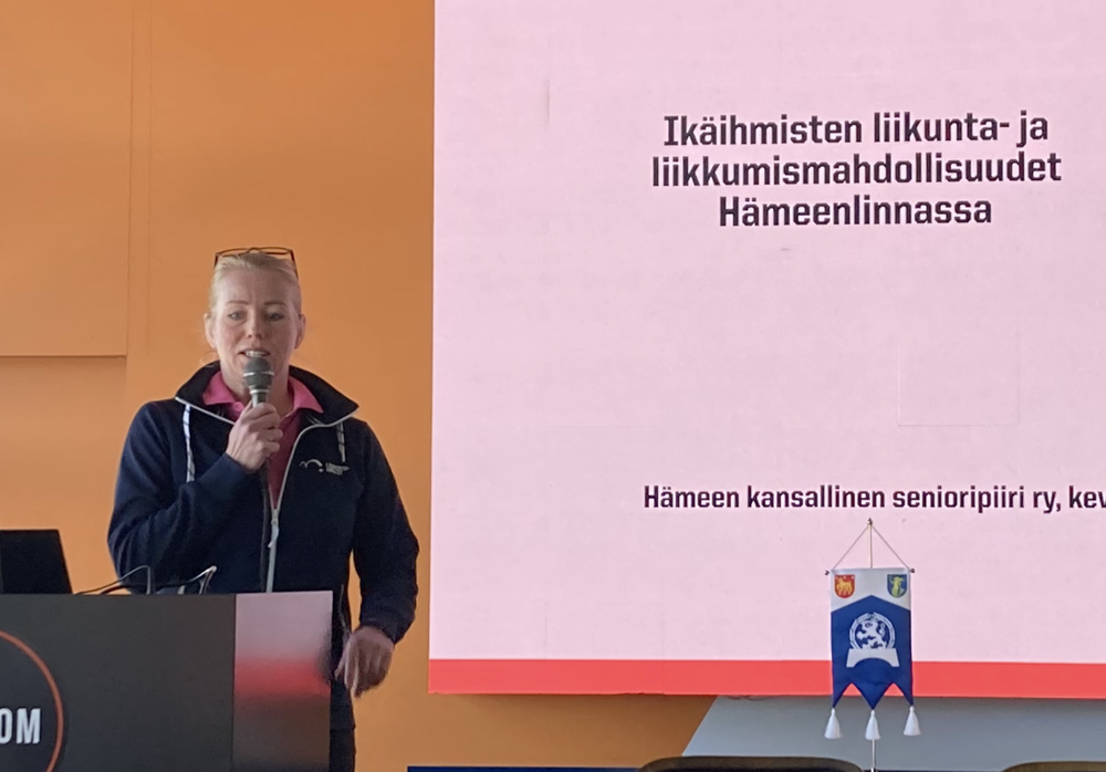 Hämeenlinnan Liikuntahallit Oy:n toimitusjohtaja Tuire Järvinen kertoi ikäihmisten liikuntapalveluista. Hämeenlinnan ikäihmiset liikkuvat paljon. Kaupunki tukee eläkeläisjärjestöjä tarjoamalla kerran viikossa maksuttoman liikuntavuoron (yhdistykseltä oma ohjaaja). Tarjolla on myös materiaalia ja ohjelmia ja liikuntahallien ammattilaisilta saa liikuntaneuvontaa, mutta salivuorot ovat maksullisia.